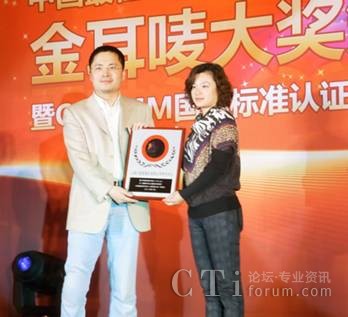 CTI論壇(ctiforum)10月25日消息(記者 潘婷婷):“金耳嘜大獎(jiǎng)”頒獎(jiǎng)儀式于近日在北京舉行。北京郵電大學(xué)CTI研究中心副主任、北京信普飛科科技有限公司董事長(zhǎng)王曉暉,應(yīng)邀參加大會(huì),并為獲獎(jiǎng)企業(yè)頒獎(jiǎng)。