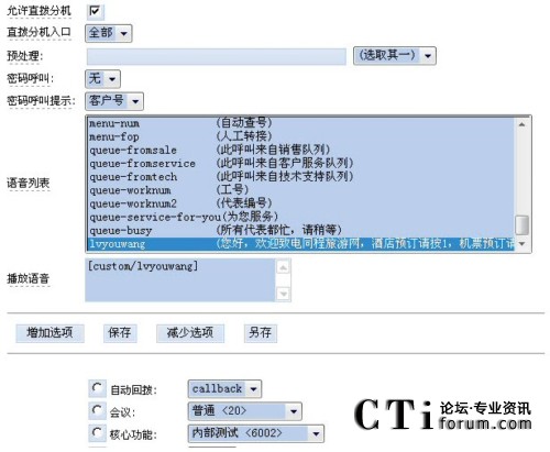 根據(jù)需要,用戶可以自己設(shè)定不同的語(yǔ)音以及不同的路由選擇,客戶呼入后就可以轉(zhuǎn)移到不同的服務(wù)組甚至不同的企業(yè)。