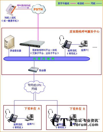 居家助殘呼叫系統(tǒng)平臺(tái)的網(wǎng)絡(luò)架構(gòu)如圖所示: