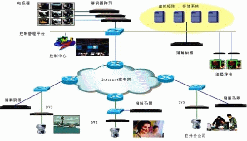 本系統(tǒng)采用數(shù)碼視訊的9000系列H.264、AVS編解碼產(chǎn)品以及EU3000系列DVS產(chǎn)品組建,系統(tǒng)的建立,用戶不需要固定的IP地址、線路,無論是身在何地都可以通過筆記本或是PC參于到視頻通訊當(dāng)中。
