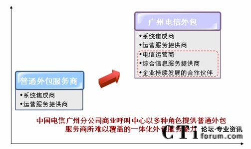 成立于1999年的中國電信廣州分公司商業(yè)呼叫中心作為中國外包呼叫中心市場(chǎng)中的領(lǐng)先者,一直以其雄厚的實(shí)力、專業(yè)的服務(wù)和豐富的經(jīng)驗(yàn)受到客戶和業(yè)界的矚目。分析其成功的原因,我們認(rèn)為主要源于三個(gè)方面:首先是其自身集呼叫中心建設(shè)系統(tǒng)集成商、呼叫中心運(yùn)營服務(wù)提供商、電信運(yùn)營商、綜合信息服務(wù)提供商、企業(yè)持續(xù)發(fā)展的合作伙伴于一身所帶來的差異化優(yōu)勢(shì)以及一體化服務(wù)模式,這是國內(nèi)眾多外包呼叫中心服務(wù)商所難以企及的優(yōu)勢(shì);其次是經(jīng)過多年積累形成的豐富運(yùn)營經(jīng)驗(yàn)和領(lǐng)先管理運(yùn)營實(shí)踐;其三是和華為公司密切合作所形成的強(qiáng)大技術(shù)實(shí)力。