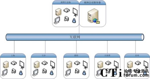 如圖,深圳南山地產(chǎn)視頻會(huì)議系統(tǒng)應(yīng)用規(guī)模為6個(gè)點(diǎn),包括深圳、上海、長沙、惠陽、大亞灣、蘇州。服務(wù)器部署在深圳用來保證香港和內(nèi)地的鏈接效果,服務(wù)器出口帶寬為3M共享,各分會(huì)場通過互聯(lián)網(wǎng)訪問服務(wù)器。在這個(gè)網(wǎng)絡(luò)平臺(tái)上,紅杉樹網(wǎng)絡(luò)會(huì)議所提供的高質(zhì)量音視頻圖像、方便易用的文檔、文件共享數(shù)據(jù)功能,使得南山地產(chǎn)能夠在這個(gè)平臺(tái)上進(jìn)行從桌面討論到會(huì)議室正式會(huì)議等各種規(guī)模的應(yīng)用。在這個(gè)平臺(tái)上,除了進(jìn)行日常例會(huì)、業(yè)務(wù)交流等常見的應(yīng)用之外,業(yè)務(wù)培訓(xùn)、異地招聘等也是經(jīng)常進(jìn)行的內(nèi)容。業(yè)務(wù)人員利用數(shù)據(jù)功能,節(jié)約了以前培訓(xùn)所花費(fèi)的大量精力和時(shí)間,為新項(xiàng)目迅速占領(lǐng)市場掌握了主動(dòng)。