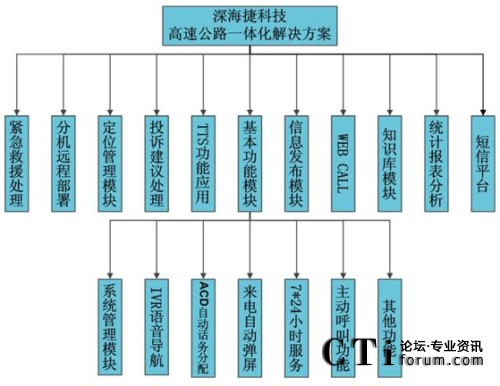 深海捷科技針對高速公路呼叫中心的需求特點,并結合長遠發(fā)展需求,通過統(tǒng)一的服務號碼接入,實現(xiàn)除呼叫中心基礎功能外的緊急救援處理模塊、分機遠程部署、定位管理模塊、投訴建議處理流程、TTS應用模塊、實時信息發(fā)布模塊、WEB