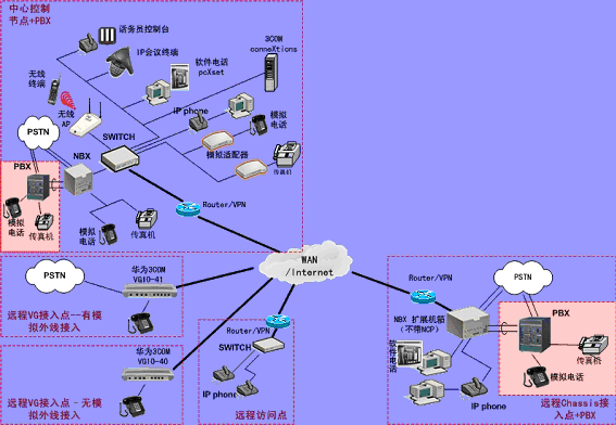 遠端使用 HuaWei-3COM 的 VG 語音網關接入 PSTN 。