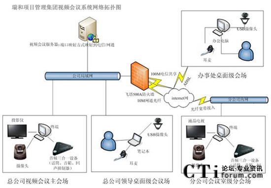 瑞和項(xiàng)目管理集團(tuán)網(wǎng)絡(luò)基礎(chǔ)建設(shè)以后,各個(gè)分支機(jī)構(gòu)通過ADSL接入到互聯(lián)網(wǎng),一般每個(gè)分支單位大約5人左右,負(fù)責(zé)1個(gè)省的業(yè)務(wù)。在現(xiàn)有的網(wǎng)絡(luò)基礎(chǔ)上構(gòu)建了XView迅流視頻系統(tǒng),來滿足各地之間的溝通需求,系統(tǒng)的大范圍使用大大的提高辦公效率,節(jié)省時(shí)間及會(huì)議成本。隨著各部門遠(yuǎn)程通信需求日益增多,充分發(fā)揮現(xiàn)有網(wǎng)絡(luò)優(yōu)勢(shì),根據(jù)瑞和項(xiàng)目管理集團(tuán)實(shí)際規(guī)模,對(duì)XView迅流視頻會(huì)議系統(tǒng)進(jìn)行擴(kuò)容到全國(guó)50個(gè)重點(diǎn)分支,改造以后XView迅流視頻會(huì)議系統(tǒng)作為公司主要通訊手段。實(shí)現(xiàn)各個(gè)分公司、辦事處充分應(yīng)用網(wǎng)絡(luò)視頻會(huì)議系統(tǒng)進(jìn)行音頻、視頻和數(shù)據(jù)的多方溝通,提高辦公效率。
