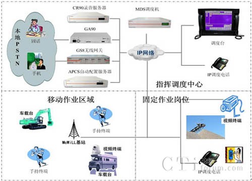 MDS系統(tǒng)可以應(yīng)用于各種作業(yè)現(xiàn)場的指揮調(diào)度, MDS系統(tǒng)不但支持系統(tǒng)基本的語音通信,調(diào)度中心可以通過視頻、數(shù)據(jù)、文本消息等綜合的多媒體方式與作業(yè)人員進(jìn)行通信交互,滿足各種復(fù)雜環(huán)境下的指揮調(diào)度需求。系統(tǒng)可以通過GS8無線網(wǎng)關(guān)、GA90 E1/T1網(wǎng)關(guān)等設(shè)備實(shí)現(xiàn)與PSTN網(wǎng)絡(luò)的互聯(lián),滿足與手機(jī)和固話網(wǎng)絡(luò)用戶接入需要。豐富的終端類型可以滿足用戶對固定崗位、移動(dòng)人員及車輛設(shè)備等不同環(huán)境的使用需求,根據(jù)人員崗位工作性質(zhì)可以配置IP調(diào)度話機(jī)、手持終端和車載臺(tái)等終端。