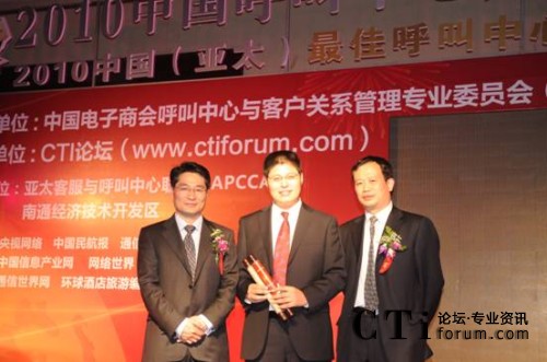 CTI論壇(ctiforum)10月14日消息(記者 潘婷婷):由中國電子商會呼叫中心與客戶關(guān)系管理專業(yè)委員會(CNCCA)主辦,CTI論壇承辦的2010中國呼叫中心產(chǎn)業(yè)峰會暨中國最佳呼叫中心頒獎典禮于2010年9月28日在北京富力萬麗酒店隆重舉行。本次大會吸引了來自全亞洲乃至世界范圍內(nèi)的權(quán)威專家學(xué)者、專業(yè)IT廠商以及金融、電信、政府、制造、電子商務(wù)、物流及零售、外包服務(wù)等行業(yè)中的領(lǐng)袖及專業(yè)人士,是亞太地區(qū)最大規(guī)模的呼叫中心及客戶關(guān)系管理領(lǐng)域的專業(yè)盛會。