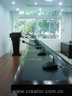 所以在本會議室配置了1臺標(biāo)準(zhǔn)的會議討論型控制主機(jī)臺CR-M4101,1臺座式的主席機(jī)CR-M4102B,9臺座式的會議代表機(jī)CR-M4104B,另外還有連接電纜等。主席機(jī)具優(yōu)先控制權(quán),設(shè)置主席位置,并且可以移動,代表機(jī)分別設(shè)置其余數(shù)個(gè)話筒點(diǎn)。采用手拉手方式,一條總線即可連接所有會議討論設(shè)備,布線簡單快捷。通過專業(yè)的音頻輸出口和音響擴(kuò)聲系統(tǒng)結(jié)合,清晰、明亮的將發(fā)言人的聲音重放出來。