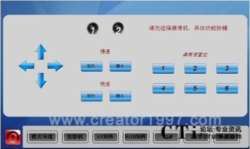 在業(yè)務(wù)不斷攀升的同時(shí),廣東移動(dòng)公司對(duì)培訓(xùn)直播室也進(jìn)行了進(jìn)一步的提升,采用了CREATOR快捷的中控系統(tǒng)和矩陣系列產(chǎn)品,其中,中控設(shè)備是CREATOR快捷PGMII型高端中央控制可編程主機(jī),通過無線真彩觸摸屏ST-7600C作為控制媒介,主要控制了矩陣、投影機(jī)、DVD、攝像機(jī)等外圍設(shè)備,對(duì)整個(gè)會(huì)議室實(shí)現(xiàn)有線全智能人性化控制。通過對(duì)矩陣進(jìn)行控制切換信道,實(shí)現(xiàn)了多個(gè)電腦會(huì)議信號(hào)的快速轉(zhuǎn)換和AV信號(hào)的切換。矩陣采用了8*4的RGB矩陣和8*4的AV矩陣,可以方便的對(duì)電腦信號(hào)和AV信號(hào)進(jìn)行簡(jiǎn)單的切換。通過紅外發(fā)射棒對(duì)DVD和攝像機(jī)進(jìn)行控制,體現(xiàn)了多媒體控制系統(tǒng)的優(yōu)越性,本系統(tǒng)還通過攝像跟蹤的原理來實(shí)現(xiàn)教室直播的錄制。