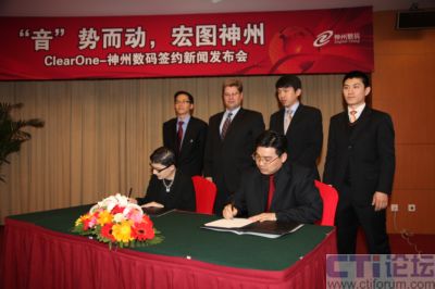 2009年3月10日,國(guó)內(nèi)最大的整合IT服務(wù)提供商神州數(shù)碼和國(guó)際領(lǐng)先的高端音頻會(huì)議系統(tǒng)供應(yīng)商ClearOne在京簽約,共同拓展國(guó)內(nèi)音頻會(huì)議系統(tǒng)市場(chǎng),依托ClearOne的技術(shù)、產(chǎn)品、行業(yè)優(yōu)勢(shì)和神州數(shù)碼強(qiáng)大的市場(chǎng)號(hào)召力及運(yùn)維能力,開創(chuàng)國(guó)內(nèi)音頻會(huì)議系統(tǒng)領(lǐng)域全新格局,為企業(yè)、教育、培訓(xùn)、醫(yī)療及政府等行業(yè)客戶帶來全新震撼體驗(yàn)!