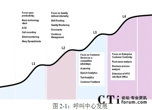 在現(xiàn)實中,還存在零程度的呼叫中心,這一點并沒有體現(xiàn)在呼叫中心發(fā)展路線圖上。零程度的呼叫中心就是那些在運營過程中并沒有很好地認識到自己角色以及對自己未來的發(fā)展毫無計劃的呼叫中心。