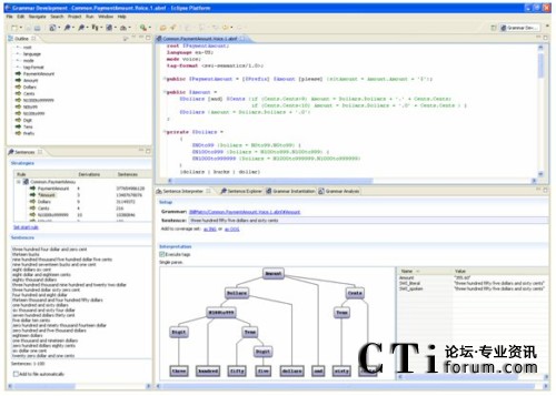Echo的NuGram IDE提供了一個(gè)工具套件有效地管理這些語法。自動(dòng)完成和動(dòng)態(tài)確認(rèn)這樣的生產(chǎn)率特性幫助創(chuàng)建語法規(guī)則。為了測試和調(diào)整,可以解析呼叫者語音樣本以便分析語法范圍和確保正確的語義翻譯。