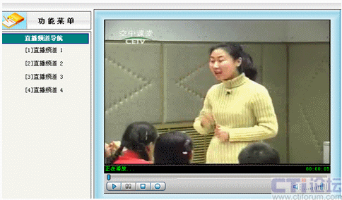 先在直播系統(tǒng)里啟動(dòng)設(shè)置好的01號(hào)頻道,其他教師就可以在各自辦公室通過計(jì)算機(jī)網(wǎng)絡(luò)觀看遠(yuǎn)教節(jié)目,不需淘神費(fèi)力地到專門的接收室了。如下圖: