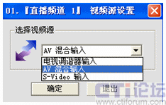 其中支持三種視頻源:從電視調(diào)諧器輸入是對應(yīng)電視光纖信號(hào)輸入,av混合輸入則對應(yīng)從電視卡的av端子輸入,s-video輸入對應(yīng)從S-video端子輸入。由于遠(yuǎn)教接收機(jī)只能輸出av信號(hào),我這里是連接電視卡的av端子接收遠(yuǎn)教電視節(jié)目的。因此這里選擇“AV混合輸入”,確定即可。