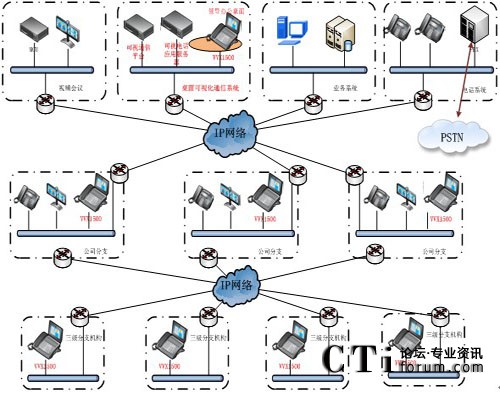通過可視電話融合通信平臺(tái)和可視電話應(yīng)用服務(wù)器,實(shí)現(xiàn)與現(xiàn)有電話系統(tǒng)的融合?梢灾С諴STN模擬線路融合,E1數(shù)字線路融合和VOIP的SIP協(xié)議融合。