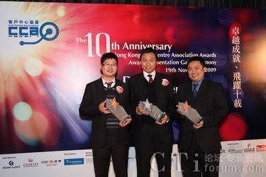 CTI論壇(ctiforum)11月20日消息(記者 張塵):11月19日晚,大中華區(qū)領(lǐng)先信息通訊技術(shù)服務(wù)商第一線安萊于2009年香港客戶中心大獎(jiǎng)評(píng)選晚會(huì)中,再次囊括三項(xiàng)大獎(jiǎng):最佳外包客戶中心 (呼入)、最佳華南客戶中心 (100席以上) 及最佳離岸客戶中心。加上上個(gè)月由中國(guó)呼叫中心協(xié)會(huì)CNCCA授予的“2009中國(guó)(亞太)最佳外包呼叫中心”及全球IP通訊聯(lián)盟所頒發(fā)的“最佳外包呼叫中心供應(yīng)商(國(guó)內(nèi))”獎(jiǎng),第一線安萊在這個(gè)金秋時(shí)節(jié)可謂收獲頗豐。第一線安萊IP呼叫中心再次獲得業(yè)界的認(rèn)同,這也體現(xiàn)了第一線安萊在該項(xiàng)產(chǎn)品及服務(wù)方面擁有領(lǐng)先的優(yōu)勢(shì),通過(guò)持續(xù)進(jìn)步,為客戶創(chuàng)造有利的營(yíng)運(yùn)模式,也有助于奠定企業(yè)服務(wù)的標(biāo)準(zhǔn),再度奪獎(jiǎng)乃實(shí)至名歸。