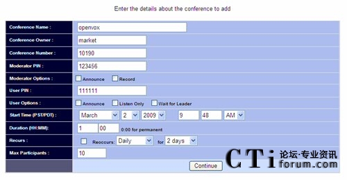 設定會議基本信息后,點擊下面的Add Conference button,頁面如下: