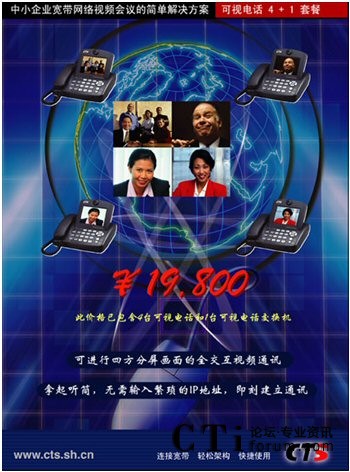 目前CTS推出4+1方案,即4臺(tái)可視電話+1臺(tái)可視電話交換機(jī)。