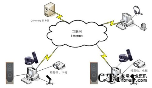 系統(tǒng)選用北京億方連線通訊技術有限公司具有國際先進水平的全新第四代網絡視頻協(xié)作會議中心Q.Meeting為核心進行構建,該系統(tǒng)由會議服務器Q.Meeting Server和基于IE 瀏覽器的客戶端組成。Q.Meeting Server運行于一臺服務器上,構成網絡會議中心,提供會議控制、視頻服務、語音服務、共享服務、WEB服務和會議用戶管理等功能。所有參加會議的人員只需通過IE瀏覽器訪問會議中心網站就可以參加會議,通過訪問會議頁面和嵌于其中的客戶端插件Q.Meeting Control實現音頻和數據共享等交流。