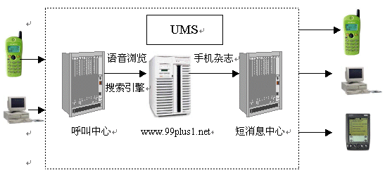 “99+1”統(tǒng)一消息網(wǎng)(以下簡稱“99+1”)是基于統(tǒng)一消息服務(wù)(UMS)平臺,應(yīng)用呼叫中心服務(wù)方式,針對移動用戶,以“99+1”網(wǎng)站為中心服務(wù)渠道,融合了先進的語音合成和語音識別技術(shù),充分實現(xiàn)了話音、數(shù)據(jù)、短消息等全方位服務(wù)方式的綜合信息服務(wù)網(wǎng)絡(luò)。