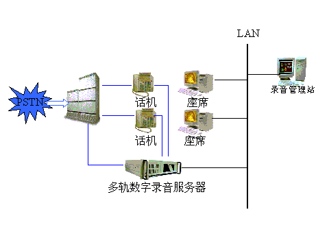 一、 錄音系統(tǒng)概念: 在通訊領(lǐng)域中,電話網(wǎng)范圍已經(jīng)普及到中國的各個角落成為主要的通信手段,通過電話人們可以相互溝通,傳達信息,通話過程中錄制有效的信息越來越得到各企事業(yè)的重視。在商務(wù)服務(wù)領(lǐng)域,各行業(yè)建設(shè)了客戶服務(wù)中心既"呼叫中心"代替?zhèn)鹘y(tǒng)的柜臺業(yè)務(wù),通過錄音記錄業(yè)務(wù)代表的服務(wù)質(zhì)量對其進行監(jiān)督和考核以便提高企業(yè)的名譽;在政府安全部門對一些重點監(jiān)控對象的往來通信進行錄音和實時監(jiān)聽,以及對某些重要指令錄音。