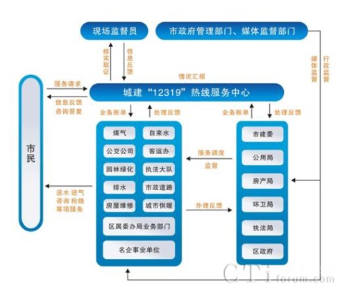 - 各城管系統(tǒng)都設(shè)立專門機構(gòu)直接與熱線中心聯(lián)系,即時處理服務(wù)中心轉(zhuǎn)來的各類問題,實現(xiàn)“市民→熱線中心→責任單位→市民”的閉路循環(huán),做到受理及時、反應(yīng)快速、處理到位, 使 12319 熱線成為密切政府與群眾關(guān)系、 創(chuàng)建行業(yè)服務(wù)品牌的一項重要舉措。