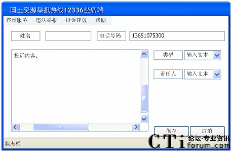 建立12336國(guó)土資源舉報(bào)熱線是為了更好的為本市的人民群眾提供服務(wù)。按故土上級(jí)部門(mén)的規(guī)劃,應(yīng)提供以下功能: