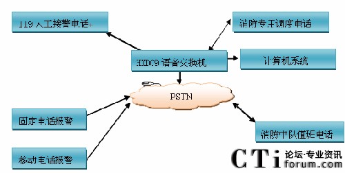 火警電話匯接至調(diào)度程控交換機(jī),將火警電話通過CTI服務(wù)器提取主叫號(hào)碼并傳送到火警受理工作站。
