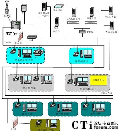 綜合指揮通過CTI技術實現(xiàn)有無線通訊指揮。