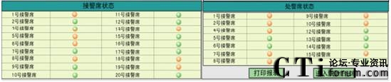 系統(tǒng)模塊中具有網(wǎng)絡運行檢測監(jiān)控等功能,可對所有接處警的網(wǎng)絡連通狀態(tài)、系統(tǒng)登錄狀態(tài)等進行狀態(tài)檢測,并當網(wǎng)絡客戶端有誤時系統(tǒng)會自動報警,并可把狀態(tài)報告存儲下來以供查閱。