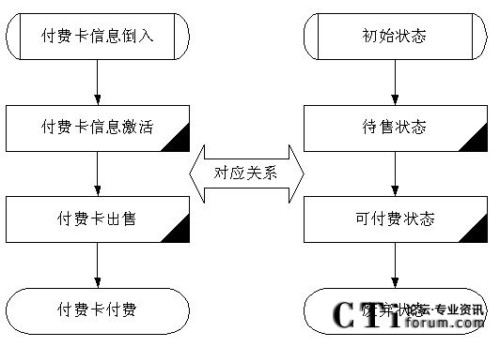 預付費業(yè)務向用戶提供實時業(yè)務消費和卡充值服務。當持卡用戶欲通過充值卡使用某種業(yè)務時,首先必須對其卡進行“身份驗證”(核對卡號及密碼),并確認其卡中的剩余金額是否足夠支付該種業(yè)務。若驗證、確認通過后,才允許用戶使用該種業(yè)務,根據(jù)用戶卡上的余額和該種業(yè)務的資費政策計算出用戶使用該業(yè)務的最大時長,并在其使用的過程中根據(jù)該種業(yè)務的資費政策進行計費,對其卡中的金額進行實時核減。若用戶使用該業(yè)務的時間達到最大時長限制,則系統(tǒng)向用戶發(fā)出超時報警,提示用戶中斷使用或者使用另外一張卡。