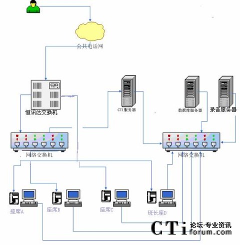 根據(jù)以上業(yè)務(wù)設(shè)計(jì)框架,我們確定了客服中心搭建時(shí)所需要的設(shè)備,系統(tǒng)的拓?fù)浣Y(jié)構(gòu)示意如下: