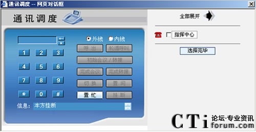 通話過程中擁有權(quán)限的班長(zhǎng)坐席可以對(duì)來電進(jìn)行強(qiáng)拆、強(qiáng)插或轉(zhuǎn)移給任何一部分機(jī)、外部電話、手機(jī),而無須讓對(duì)方再撥打一次電話 |