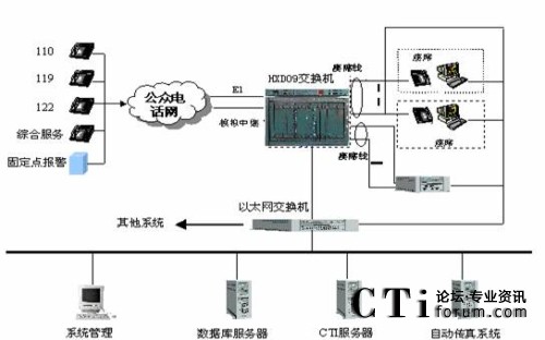 綜合接警平臺主要由hxd09可編程智能語音交換機(jī)和計(jì)算機(jī)網(wǎng)絡(luò)兩部分組成,交換機(jī)負(fù)責(zé)110、119、122報(bào)警電話的接入與分流及調(diào)度呼出等功能;計(jì)算機(jī)網(wǎng)絡(luò)則完成110、119、122報(bào)警信息的顯示、數(shù)據(jù)儲存、統(tǒng)計(jì)及信息查詢、發(fā)布功能。