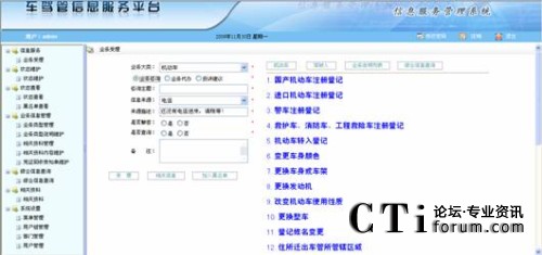 該模塊主要受理三大類業(yè)務:咨詢類業(yè)務、代辦類業(yè)務和投訴建議類業(yè)務,以及提供業(yè)務咨詢和業(yè)務代辦時的相關業(yè)務信息檢索和機動車、駕駛人綜合信息的查詢驗證。