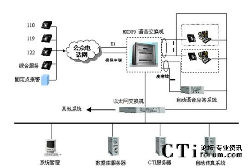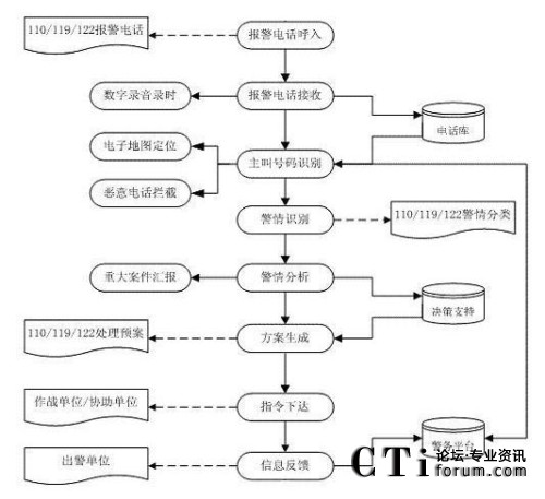 該系統(tǒng)主要分為電信子系統(tǒng)(完成聯(lián)動(dòng)中心與各電信公司之間話音的傳輸、交換和分配,以及主叫號(hào)碼和主叫地址的自動(dòng)查詢和傳輸?shù)龋⒔泳行淖酉到y(tǒng)(統(tǒng)一接聽(tīng)和處理市民的報(bào)警、求助電話)、指揮調(diào)度子系統(tǒng)(或稱為處警中心,通過(guò)直觀的地理信息系統(tǒng)和數(shù)據(jù)庫(kù),可以對(duì)所有的資源和警力分布了如指掌。通過(guò)一體化的無(wú)線數(shù)據(jù)傳輸和無(wú)線調(diào)度臺(tái)進(jìn)行方便的統(tǒng)一管理,指揮和調(diào)度)、信息網(wǎng)絡(luò)子系統(tǒng)(聯(lián)動(dòng)中心的骨干網(wǎng)絡(luò),把各種數(shù)據(jù)數(shù)庫(kù)、接處警席位、移動(dòng)的警用車載計(jì)算機(jī)等互聯(lián)在一起,形成一個(gè)強(qiáng)大的信息網(wǎng)絡(luò))、無(wú)線指揮調(diào)度通信子系統(tǒng)、大屏幕顯示子系統(tǒng)、地理信息子系統(tǒng)、GPS/GIS子系統(tǒng)。