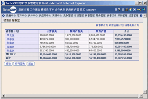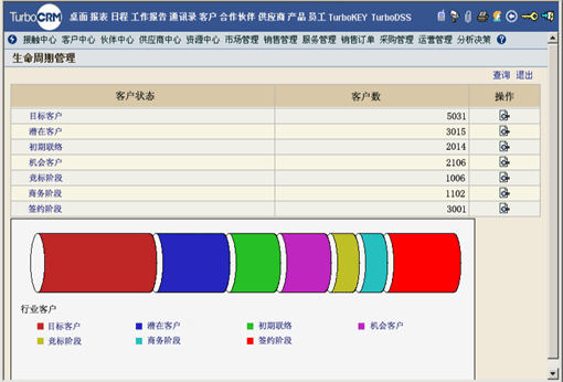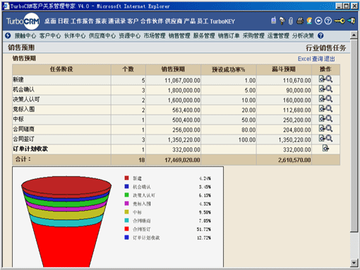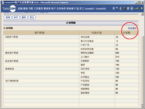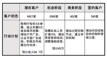 利用CRM系統(tǒng),我們可以對以前年度的銷售記錄進行統(tǒng)計分析,計算出客戶各階段的升遷情況及成功率,在制定新年度銷售計劃時,我們就可以根據(jù)這些經(jīng)驗參數(shù),將銷售計劃落實到對各階段客戶數(shù)量及質(zhì)量的具體需要,并以此來配置和協(xié)調(diào)公司資源,做到步步控制。