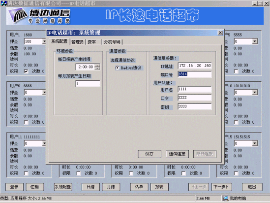 SuperB語(yǔ)音計(jì)費(fèi)管理系統(tǒng)IP超市版 專(zhuān)用于基于VoIP技術(shù)IP超市的語(yǔ)音計(jì)費(fèi)關(guān)鍵軟件(最大可管理10000個(gè)語(yǔ)音終端、網(wǎng)關(guān),內(nèi)置博達(dá)Radius Server)