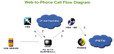VocalTec公司的網(wǎng)上呼叫(Surf&Call)網(wǎng)絡(luò)客戶軟件5.0(Web Client5.0),可提供語音增值電子商務(wù)服務(wù)以及通過IP網(wǎng)的網(wǎng)絡(luò)到電話呼叫業(yè)務(wù)。Surf&Call是一種面向基于互聯(lián)網(wǎng)電信應(yīng)用的獨(dú)特網(wǎng)絡(luò)軟件,可通過互聯(lián)網(wǎng)使任何網(wǎng)站與普通電話實(shí)現(xiàn)語音連接,是VocalTec整體架構(gòu)的一部分。Surf&Call為網(wǎng)頁提供一個按鈕,上網(wǎng)者單擊該按鈕,就可與座席通話。在大多數(shù)瀏覽器環(huán)境下,在瀏覽需要利用Surf&Call軟件的頁面時,Surf&Call可自動下載和安裝。