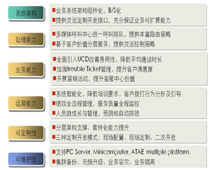 從服務內(nèi)容來看,聯(lián)絡中心建立了一個統(tǒng)一面向客戶的綜合性服務平臺,實現(xiàn)涵蓋公司各項主要產(chǎn)品和業(yè)務的專業(yè)信息咨詢與交易功能,并實現(xiàn)人工服務、業(yè)務咨詢、業(yè)務處理、投訴處理、建議受理、預約服務、客戶回訪等一體化的話務處理與管理,為客戶提供多樣化、全方位、個性化的接入方式與服務內(nèi)容。