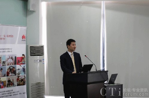 圖:華為軟件UC市場技術經(jīng)理穆立昌分享華為統(tǒng)一通信解決方案