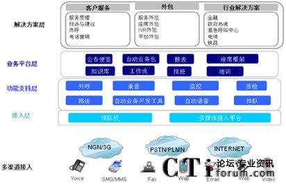 Smart CTI中間件是華為公司面向金融、外包、政府、緊急救援、能源等行業(yè)而推出的聯(lián)絡(luò)中心平臺(tái)。Smart CTI結(jié)合了CTI、Web和視頻技術(shù),提供多媒體接入和統(tǒng)一路由功能,讓客戶可以輕松快捷地構(gòu)建一個(gè)整合語(yǔ)音、視頻、傳真、短信、Web等能力的多媒體接觸中心。Smart CTI采用電信級(jí)的系統(tǒng)設(shè)計(jì),具有高可靠性和強(qiáng)大的處理能力,能夠支持多種綜合業(yè)務(wù)的受理,包括投訴、建議、咨詢、信息查詢、自動(dòng)和人工等業(yè)務(wù)。為了能夠更好地支撐聯(lián)絡(luò)中心運(yùn)營(yíng)維護(hù),還提供了分析型報(bào)表、知識(shí)庫(kù)、工作流、模擬開(kāi)發(fā)環(huán)境、可視化IVR流程開(kāi)發(fā)平臺(tái)等一系列輔助精細(xì)化運(yùn)營(yíng)軟件,幫助客戶實(shí)現(xiàn)業(yè)務(wù)快速上線、降低運(yùn)營(yíng)維護(hù)成本。Smart CTI采用了獨(dú)立于各種接入媒體的設(shè)計(jì)結(jié)構(gòu),具有良好的開(kāi)放性和可擴(kuò)展性。采用業(yè)務(wù)和交換分離的設(shè)計(jì)思想,業(yè)務(wù)實(shí)現(xiàn)層及業(yè)務(wù)支撐層從傳統(tǒng)的網(wǎng)絡(luò)中分離出來(lái),使業(yè)務(wù)實(shí)現(xiàn)層也具有良好的開(kāi)放性和可擴(kuò)展性。Smart CTI包含了媒體接入、功能支撐、服務(wù)支撐等模塊,是華為IPCC系統(tǒng)的核心控制服務(wù)器。