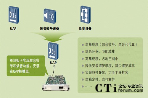 隨著全球氣候的變化,低碳經(jīng)濟(jì)已經(jīng)成為關(guān)注焦點(diǎn)。一體化接入平臺(tái)UAP2100內(nèi)置了寬窄帶語(yǔ)音交換和排隊(duì)功能,在僅2U的高度之內(nèi)實(shí)現(xiàn)了寬窄帶中繼接入和錄音、放音等媒體資源處理能力,無(wú)需外置媒體服務(wù)器和中繼網(wǎng)關(guān),低能耗元器件的使用和高集成度設(shè)計(jì),有效降低了空間占用和能源消耗,使您在不經(jīng)意間就實(shí)現(xiàn)了綠色聯(lián)絡(luò)中心平臺(tái),降低您可觀的運(yùn)行成本。