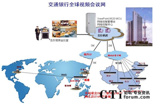 華為視訊構建的視頻會議系統(tǒng)覆蓋交通銀行全國27個省級分行和全球6個分支機構,采用三級組網(wǎng)模式。系統(tǒng)主會場在上海交通銀行總部。系統(tǒng)采用IP組網(wǎng),總行采用一套ViewPoint8620視訊交換平臺作為頂級平臺、各省分行及海外分行采用28套ViewPoint8630 IP視訊平臺作為二級平臺,各地市分行按當?shù)氐臉I(yè)務需求或采用會議電視終端掛在省分行的二級MCU下,或放置一套ViewPoint8630 MCU組建本地市分行的三級視頻會議網(wǎng)絡,并有效接入總行的MCU平臺。網(wǎng)上目前總計有150套終端,實現(xiàn)了交通銀行總部和全球所有分支機構之間的遠程會議、視頻溝通、遠程培訓等功能。在節(jié)約寶貴時間、精力和金錢的同時,提高了銀行管理和決策的效率。