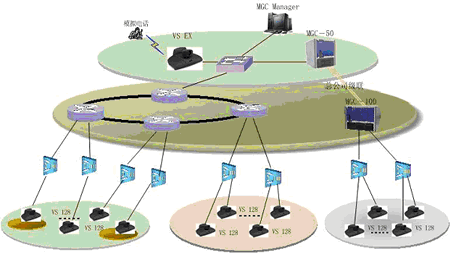 一般來說,在省公司同時(shí)參與會(huì)議的人數(shù)較多,考慮配置比較大的系統(tǒng),由某一領(lǐng)導(dǎo)召集一些相關(guān)成員在此開會(huì);在地市公司同時(shí)參與會(huì)議的人數(shù)較少,只是一些主要領(lǐng)導(dǎo)參加會(huì)議,考慮配置比較小的系統(tǒng);同時(shí),為了實(shí)現(xiàn)終端之間管理和傳送音頻、視頻和數(shù)據(jù),需要MCU來協(xié)調(diào)終端的工作,并與上級(jí)MCU相級(jí)聯(lián),擴(kuò)大會(huì)議的規(guī)模。另外,可以增加一套T.120服務(wù)器,該系統(tǒng)是利用多媒體技術(shù)幫助使用者對(duì)工作中的各種信息進(jìn)行處理,如共享數(shù)據(jù)、共享應(yīng)用程序、實(shí)現(xiàn)文件的雙向傳輸?shù)龋瑥亩鴺?gòu)造出一個(gè)多人共享的工作空間。以及增加一套VOD系統(tǒng),它集視頻采集、點(diǎn)播、廣播于一體,這樣就可以將視頻會(huì)議的內(nèi)容實(shí)時(shí)的錄制到本地,也可將一些培訓(xùn)資料放在視頻點(diǎn)播里,便于對(duì)貴公司員工進(jìn)行培訓(xùn),還能通過視頻廣播的功能,讓使用PC機(jī)的人員不在會(huì)議室,便可以通過瀏覽器實(shí)時(shí)的看到和聽到正在召開的會(huì)議。