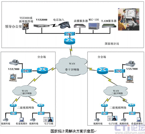 為確保如此巨大的視頻會(huì)議系統(tǒng)的應(yīng)用效果,視頻會(huì)議系統(tǒng)的各個(gè)設(shè)備全部采用POLYCOM公司的產(chǎn)品。寶利通(POLYCOM)公司依靠自身豐富的經(jīng)驗(yàn)、領(lǐng)先的產(chǎn)品和技術(shù)以及豐富的項(xiàng)目部署經(jīng)驗(yàn),結(jié)合國家統(tǒng)計(jì)局的實(shí)際需求,提出了全套的視頻會(huì)議系統(tǒng)解決方案,并最終憑借產(chǎn)品出色的視音頻質(zhì)量、良好的穩(wěn)定性和先進(jìn)的技術(shù)、以及出色的服務(wù)贏得了用戶的認(rèn)可,成功中標(biāo)國家統(tǒng)計(jì)局視頻會(huì)議系統(tǒng)項(xiàng)目.該系統(tǒng)可最大限度地發(fā)揮其現(xiàn)有IP寬帶網(wǎng)絡(luò)的優(yōu)勢,加快對(duì)具體事件的處理速度,節(jié)約辦事人員的路途時(shí)間,最大限度地提高政府的辦公效率,降低辦公費(fèi)用。