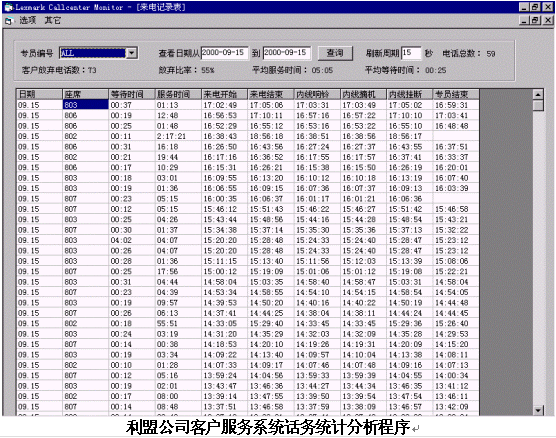 隨著利盟公司客戶服務(wù)系統(tǒng)的開(kāi)通,使傳統(tǒng)的電話服務(wù)提高到了一個(gè)新的階段;一方面借助客戶服務(wù)系統(tǒng)提供的統(tǒng)計(jì)分析功能,使客戶服務(wù)中心的績(jī)效考核更加準(zhǔn)確、高效和科學(xué);另一方面通過(guò)應(yīng)用先進(jìn)的信息技術(shù)和產(chǎn)品,可以極大地提高客戶服務(wù)的質(zhì)量、效率和滿意度,從而對(duì)提升公司形象,促進(jìn)產(chǎn)品銷售發(fā)揮積極的作用。
