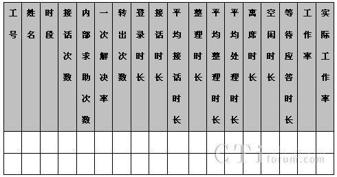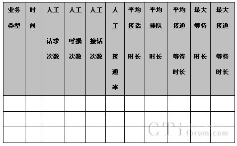 1.投訴建議流水報(bào)表   2.主要的運(yùn)營報(bào)表有:   交行座席工作情況統(tǒng)計(jì):統(tǒng)計(jì)各座席在某個時間段內(nèi)的呼叫總次數(shù),呼叫處理的總時長,平均處理時長,登錄時長,離席次數(shù),空閑時長,示忙時長,累計(jì)工作時長,話路轉(zhuǎn)移次數(shù),會議次數(shù),超時次數(shù),未應(yīng)答的呼叫次數(shù);