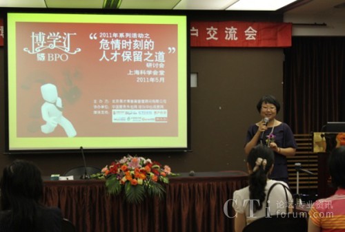 CTI論壇(ctiforum)6月3日消息(記者 張潔):2011年5月31日下午,上?茖W(xué)會(huì)堂思南樓九層賓客盈門,勝友如云。易才博普奧“博學(xué)匯”系列活動(dòng)之四“危情時(shí)刻的人才保留之道”研討會(huì)在輕松愉悅的氛圍中拉開(kāi)帷幕。本屆“博學(xué)匯”以“人才保留”為主題,邀請(qǐng)了業(yè)內(nèi)權(quán)威專家及其資深從業(yè)者就人才保留這一話題展開(kāi)一系列探討。會(huì)上分別從學(xué)術(shù)觀點(diǎn)、呼叫中心、人力資源、服務(wù)外包等諸多領(lǐng)域來(lái)探討人才保留的種種新途徑、新方法。