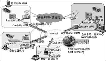 2700/1700)同樣獲得固定的合法IP地址,這樣兩點(diǎn)間可以方便地通過(guò)IPSEC VPN建立起安全隧道,有的小型分支機(jī)構(gòu)可能租用ADSL/xDSL鏈路,此時(shí)Contivity(Contivity